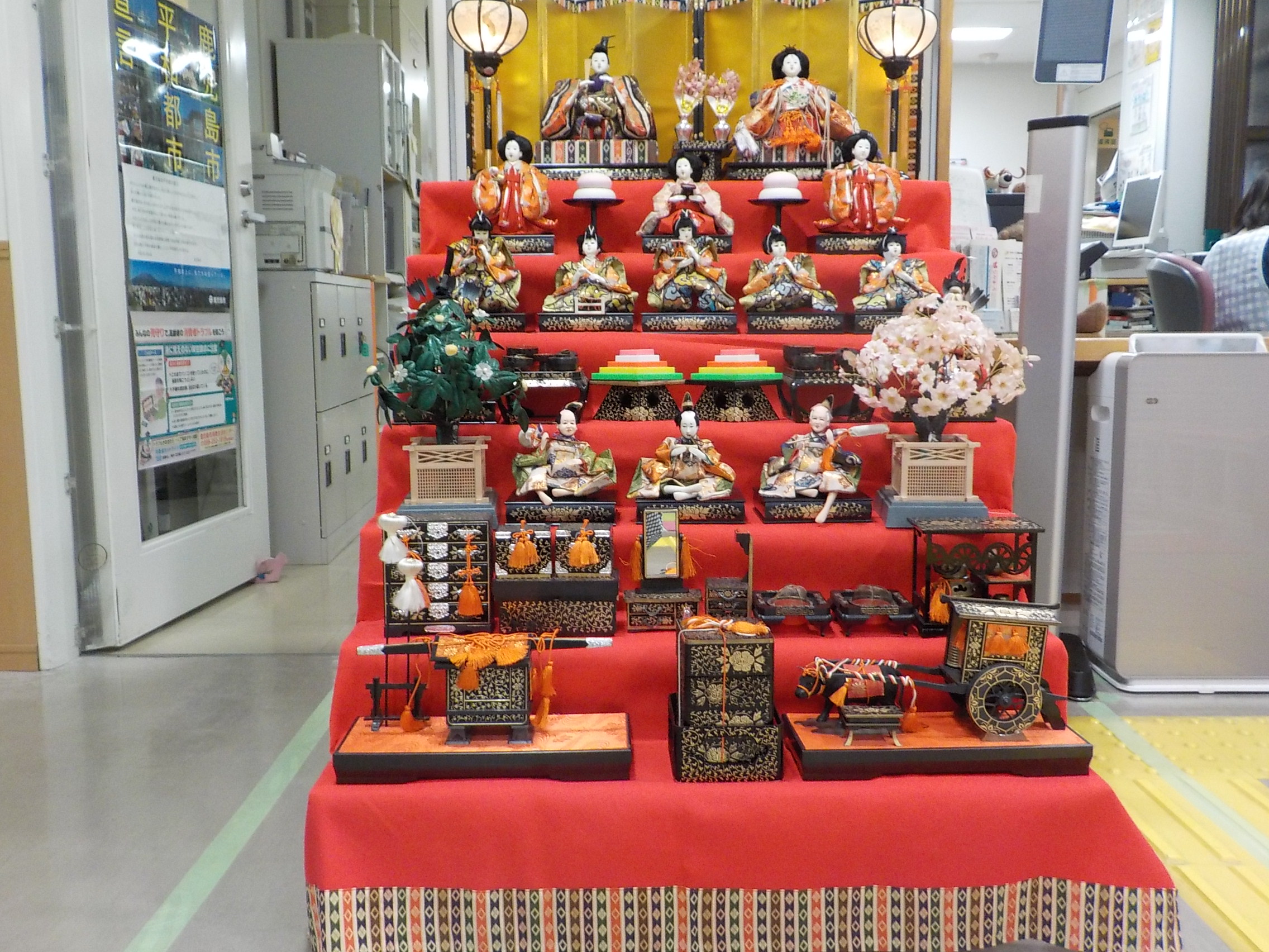 3月3日の桃の節句に合わせて、5階エントランスにお雛様を飾りました。7段ある本格的なものでとても荘厳な雰囲気。実物を初めて見る子どもたちも多く、その興味津々な様子がとても可愛らしいです。鹿児島は旧暦で行う行事があり、このお雛様も4月初めまで飾りますので、是非見に来てくださいね!
