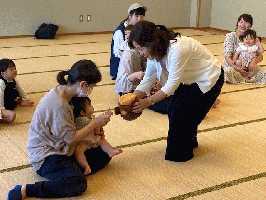 今月の曲は何かな?リズムや音に合わせて、体を動かしたり楽器で演奏します。一緒に音楽を楽しみましょう♪
