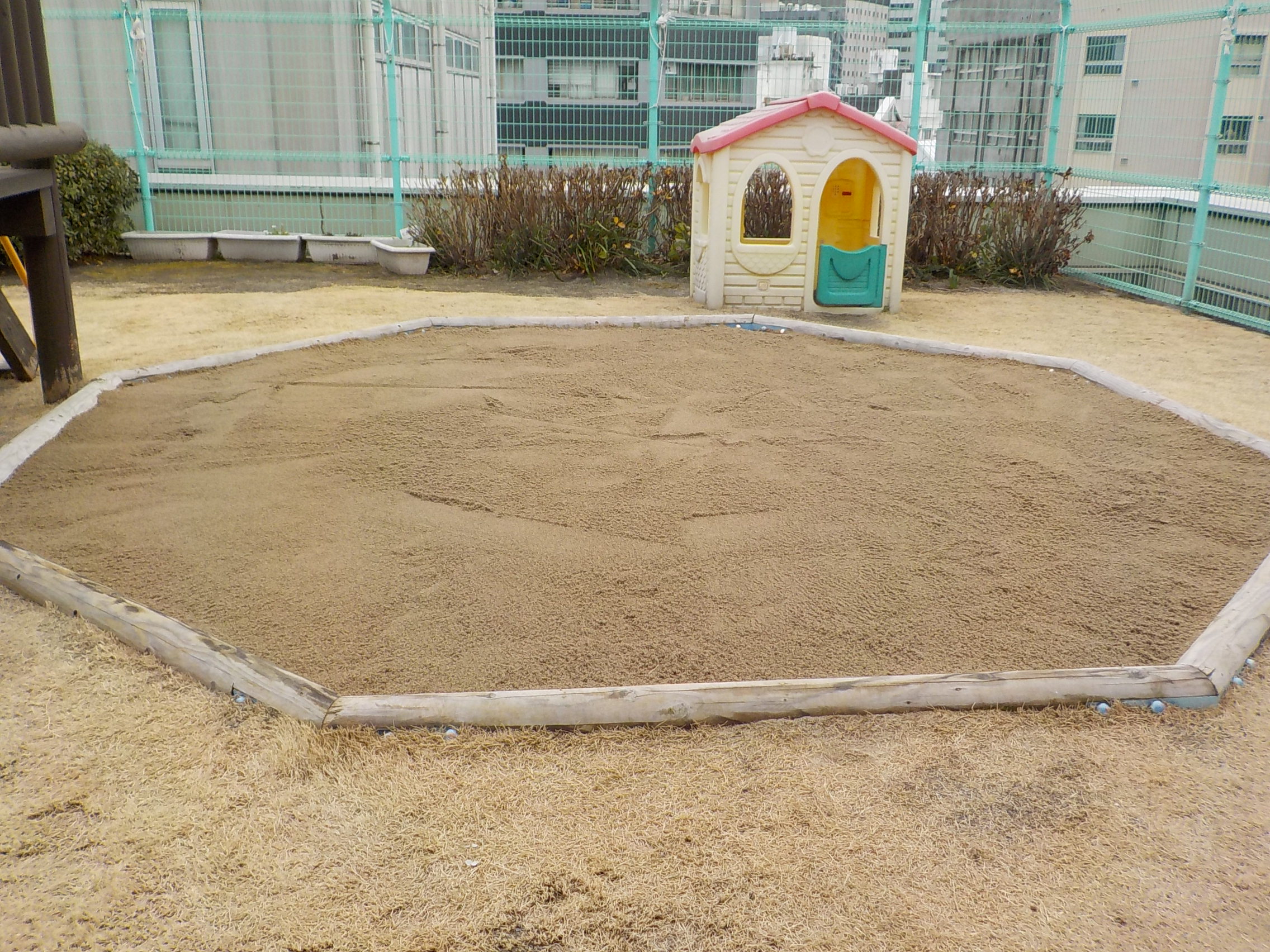 なかまっちの6階屋上広場にある砂場は子どもたちに大人気。