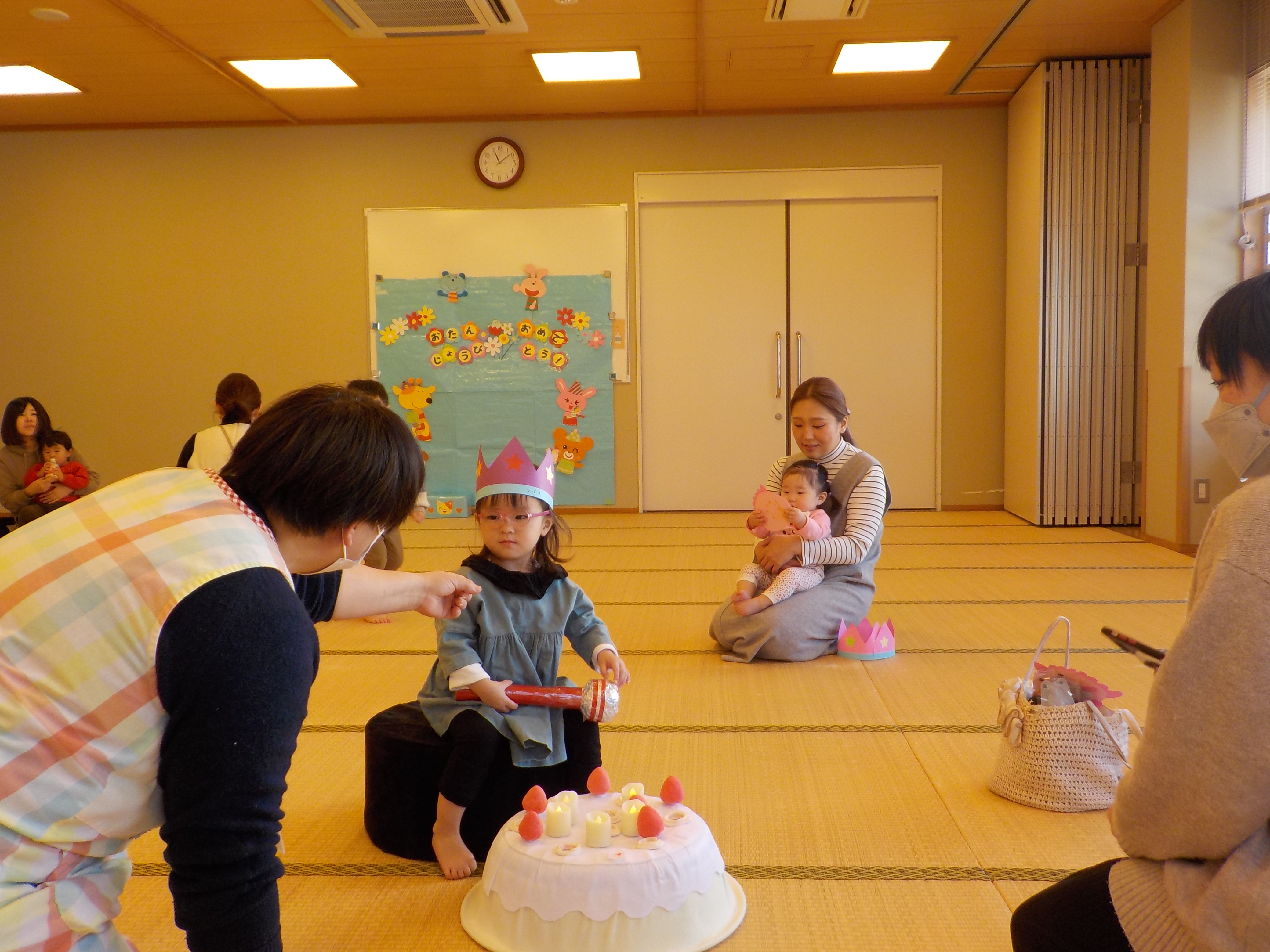 1月生まれのおともだち誕生日おめでとう☆受付後、お誕生カード(身長・体重等)と冠を準備します。なかまっちでお祝いしましょう。